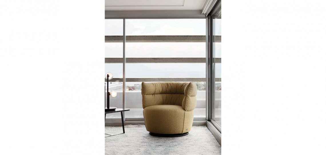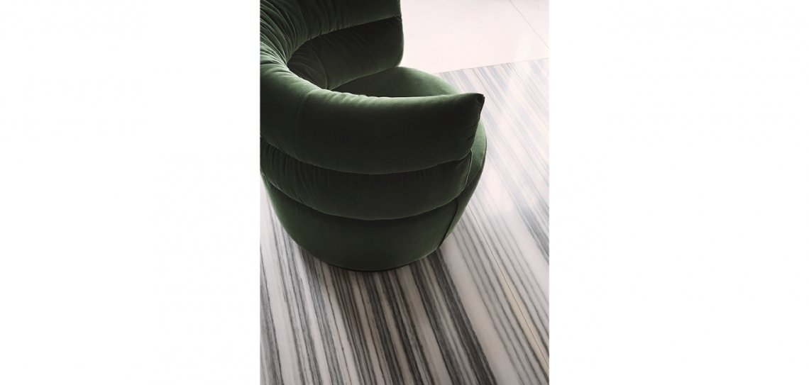 Julie si caratterizza per elementi dal disegno essenziale ma raffinato in ogni dettaglio. Segni peculiari sono l’imbottitura ricca e morbida e le impunture che corrono lungo tutta la superficie dello schienale.