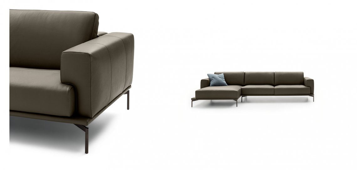 Comfort e volumi misurati caratterizzano il divano Airon. Il modello prevede diversi elementi che ne moltiplicano le possibilità di utilizzo. Lo schienale regolabile, per esempio, offre diverse opzioni di seduta: con sostegno più alto, ideale per conversare; comfort, perfetta per leggere; relax, più profonda, per la massima comodità.