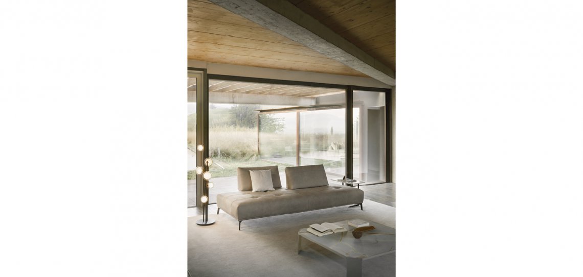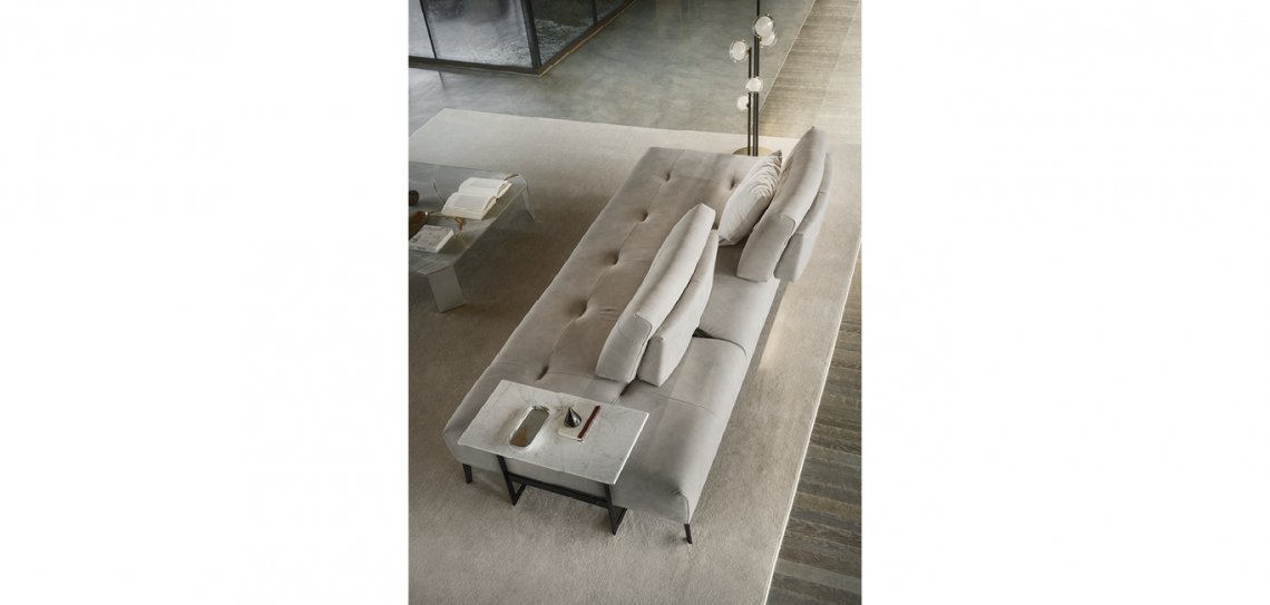 Dalle forme lineari e rigorose, l’Egeo è sinonimo di comfort assoluto. La cucitura “tirata” sulla seduta riprende l’estetica della tradizione “boudoir” in chiave contemporanea e minimale.