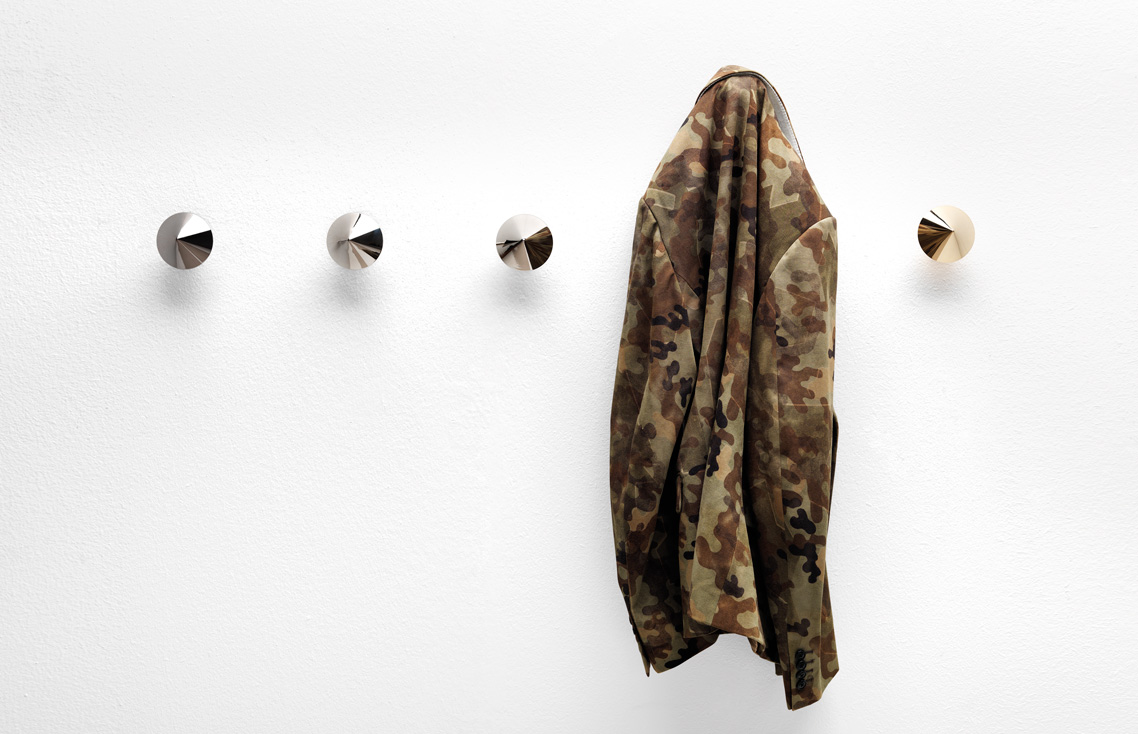 è un neppur troppo celato omaggio al punk, Borchia il gancio appendiabiti disegnato da Lapo Ciatti. La sua estetica è un chiaro rimando alle borchie che si applicano sui vestiti e, come il movimento a cui si ispira vuole essere oggetto forte e deciso, non convenzionale, fuori dagli schemi.