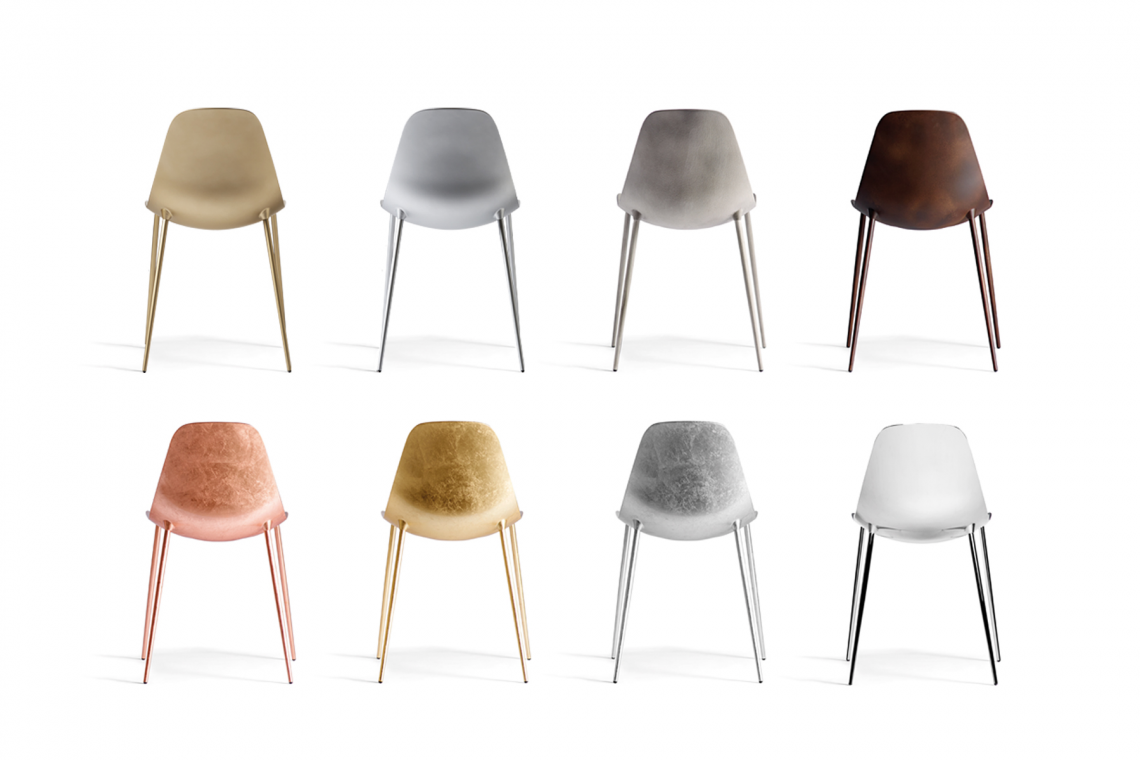Lucida o opaca, preziosa o dal sapore industrial, può essere ricoperta da foglie leggere – in oro, argento, rame –, lucidata a mano nella versione a specchio, vestita con finiture dal sapore materico effetto bronzo o cemento, o regalare bagliori cangianti grazie alle nuove verniciature metalliche oro o argento.