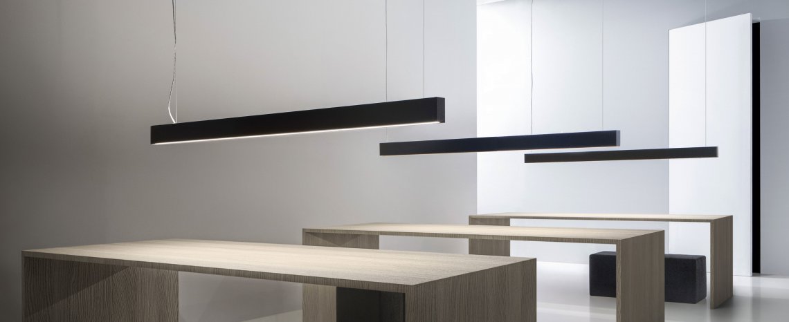 Wall and suspension luminaire with direct and indirect light emission. Light source made of LED module with separate switching ON-OFF or DALI/Push DIM integrated drivers. Finish in polyacrylic paint in white or black and smooth front finish of the profile. Diffusor in opal or micro prismatic polycarbonate. Ideal for offices, corridors, stairways.