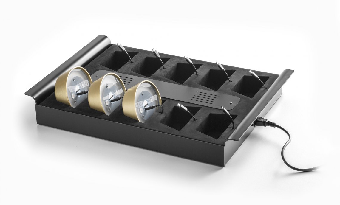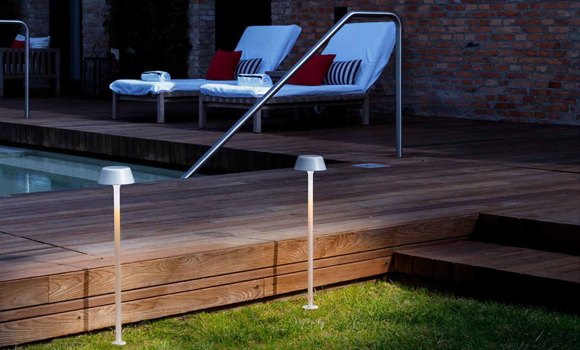 Firefly in the sky is an IP65 outdoor battery table and peg lamp. The removable head contains magnetic coupling system, rechargeable battery via USB-C, LED source and Step DIM control with 5 light intensity settings. Depending on the conditions of use for a recharge of approximately 4 hours, an autonomy of approximately 6 hours is estimated with 100% light intensity and approximately 24 hours with 25% light intensity. Anti-slip base included. Double anti-theft mechanism, one to fix it to the table and the other to fix the head to the structure to be ordered separately. The peg version allows to light the green and the paths by solving any constraint of positioning or power supply, minimizing the impact on the environment. White, mat black, bronze, titanium and champagne finishes are available.