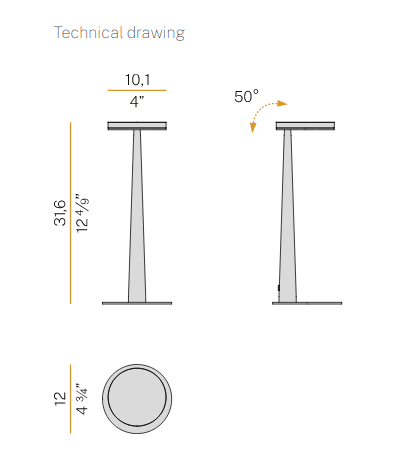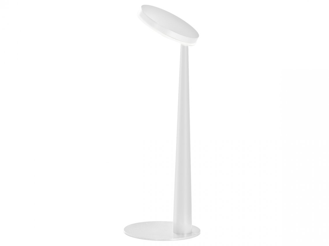 Suspension, table and wall lamp (also available recessed) with die-cast aluminium head. Diffuser in acrylic material with luminous perimeter. Decentralized conical arm, adjustable head and technology Step DIM with 5 intensity of light settings characterize the table and wall versions, the latter also with a joint at the base, for a higher positioning flexibility. The suspension version has a fixed head with central tige, is available in direct and indirect light versions.Ivory fabric lampshade “Bella vestita” designed by mateo Thun is available, to order separately. White, black, titanium, bronze and mat brass finishes are available.