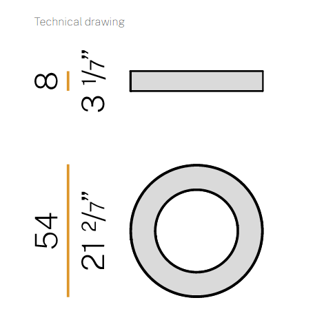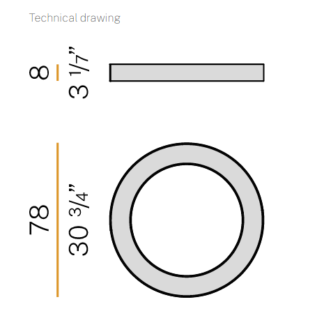 Aluminium ring with bottom high-transmittance screen in opal polycarbonate. Available in wall/ceiling and suspension versions. Emission of direct light provided by LED module with technology DALI/Push DIM on all versions. Ring eventually finished in polyacrilic paint white, black, bronze or hand-decorated in golden leaf. Custom colors are available on request. Suspended version supplied with 3 steel cable adjustable in lenght (6 cables for 180cm). The wall/ceiling version is supplied with a simplified mounting kit. Ideal for residential use, compositions for offices, hospitality facilities and public spaces. Delivery of the product in a single piece already assembled.