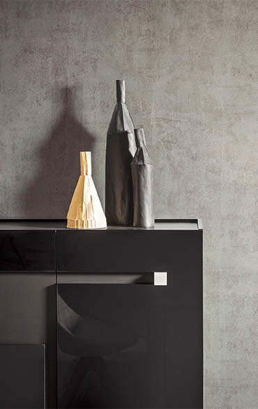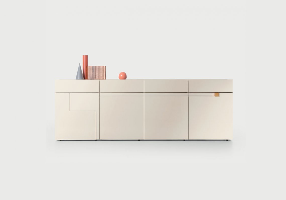 The Logos collection extends, spawning a new and prestigious sideboard collection. With the development of this project, which has ventured beyond the bedroom into the living area, Pianca cements its reputation as a company offering “total living” solutions. The front part of the modules is a composition of offset, overlaid inter-communicating elements, an homage to artist and designer Bruno Munari, who conducted a lengthy study of the spatial effects deriving from placing coloured surfaces together. Contrasting colours can be used on the outside and inside surface, combining to create different looks that can range from playful to elegant according to individual tastes.