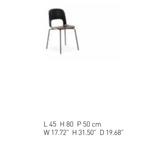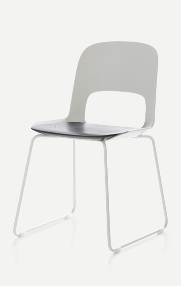 Cora is the final result of an aesthetic research exploring the differences between wood, metal and plastic in one simple object: the chair. Wood renders warmth and solidity to the seat, plastic confers elasticity to the backrest while metal grants visual lightness to the structure. Cora is the result of a challenging work carried out together with the injection moulding engineers aiming to create the perfect dialogue between different materials respectful of the structure stress regulations. the result is a strong, light, manageable chair, of compact size, that uses its all materials to best advantage.