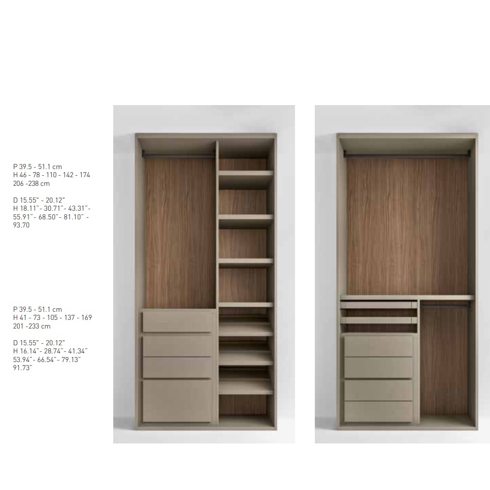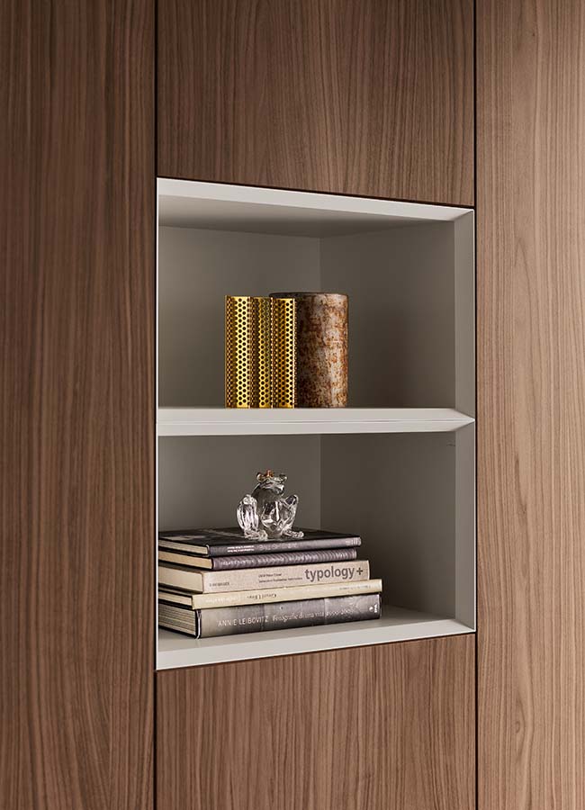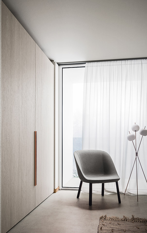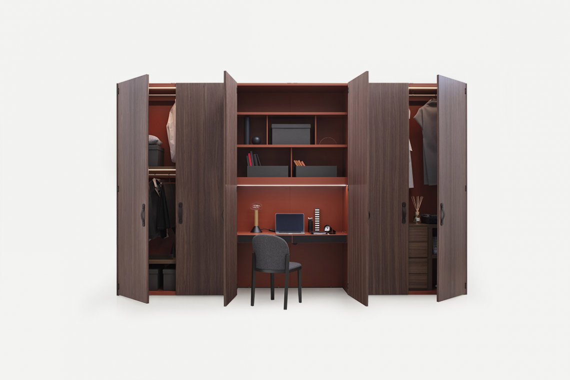 Minimalism and versatility become freedom to customise and furnish. Simple, linear doors are available lacquered, in wood or textured, completed by a vast range of handles to pair with hinged, sliding, flush sliding doors and with 180° Cardine opening hinge. Problem-solving comes naturally to Plana that is also available in special modules: four-season units, over door modules, bridging modules with a desk or TV, modules with external drawer units, household appliances, with open modules, terminal modules and walk-in closets with folding doors and the home office niche: a practical, functional solution to create a workspace at home . Custom-sized modules that can be fitted in any kind of space are also available.