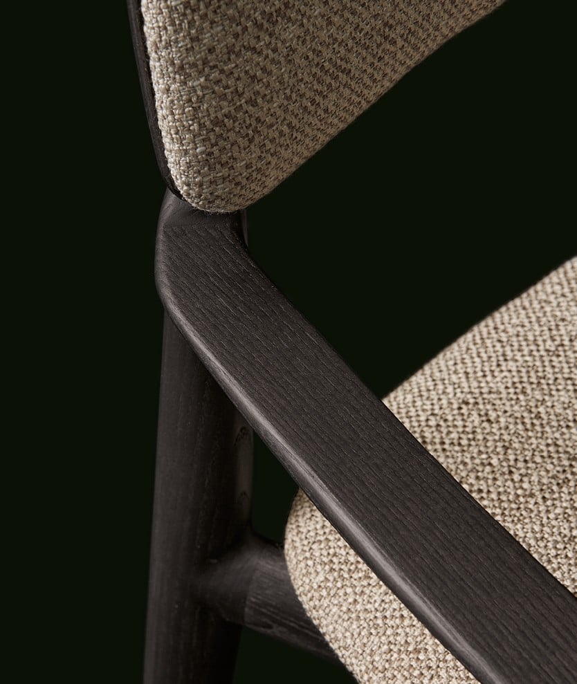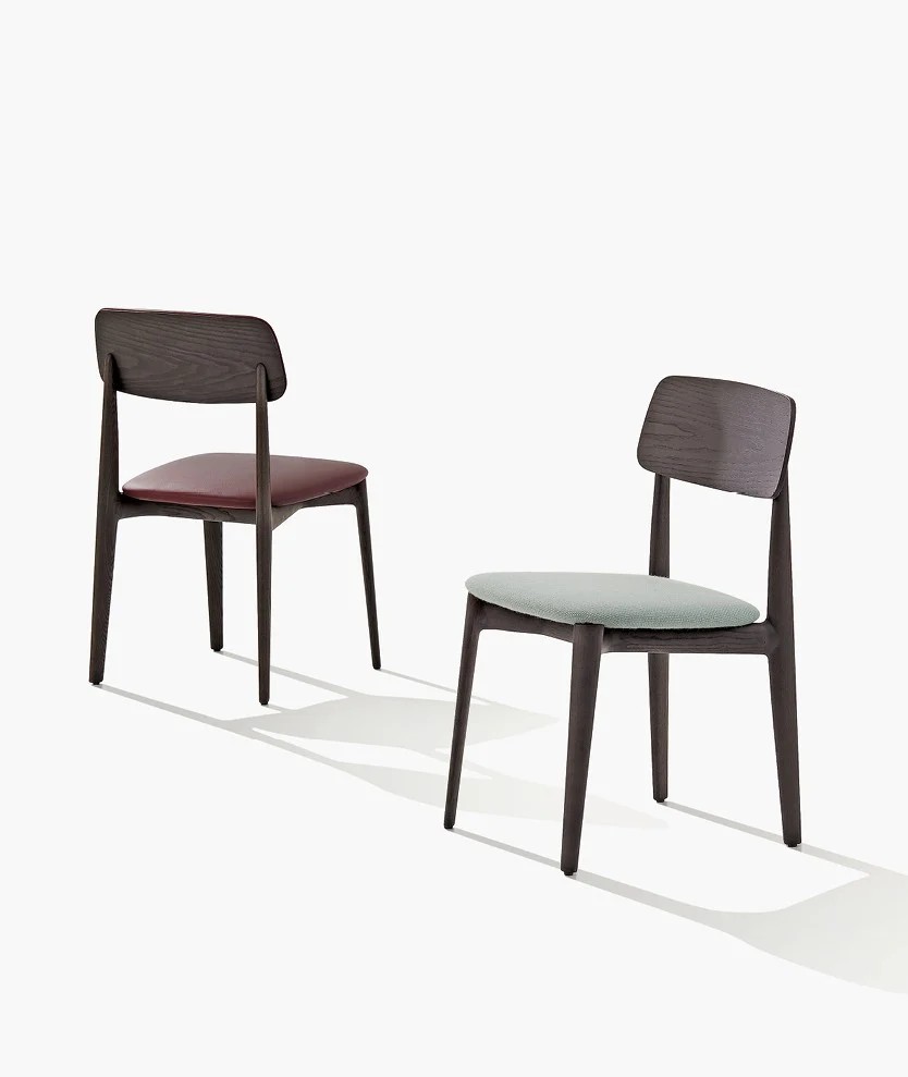 Light and elegant, behind its apparent simplicity this chair hides an intricate crafting of solid wood. In all three variants—wood, wood with upholstered seat and wood with upholstered seat and backrest—the material is the protagonist. Soft curves and tapering slender lines are inspired by modern design. The result is a classic yet contemporary chair, ideally combined with the table by the same name.