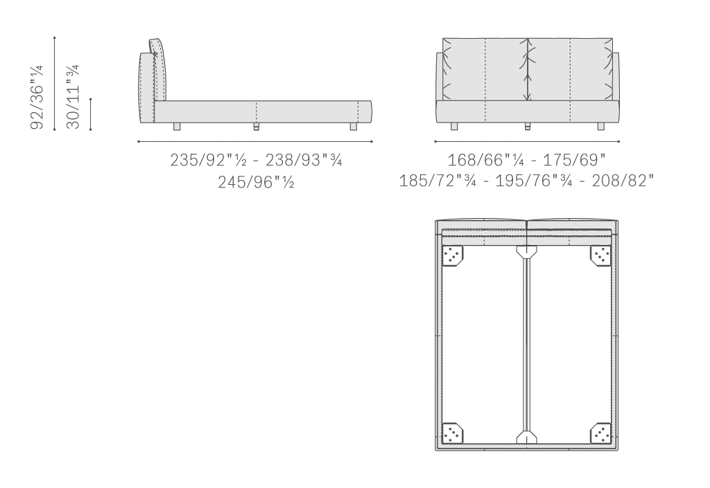 Massimosistema Bed床得名于同名沙發,重現其寬大豐富的幾何形狀,重新刻畫靠墊和后側之間的重疊游戲。以珍貴絎縫線裝飾Pelle Frau?軟皮覆面。包容而不拘一格,Massimosistema Bed還可提供配備一只大容積收納倉的版本。