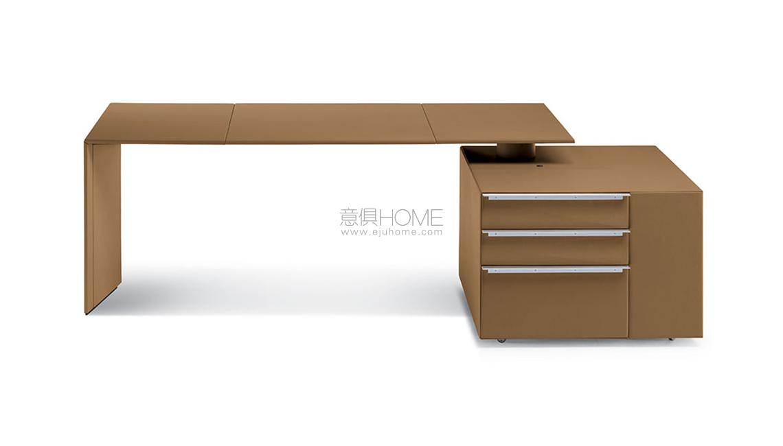 CEO Cube Easy Desk寫字臺(tái)使用翻轉(zhuǎn)“C”形結(jié)構(gòu),可以搭配帶輪抽屜柜。所有的CEO Cube寫字臺(tái)均可以選配完全覆蓋Pelle Frau?的鋁制護(hù)板。