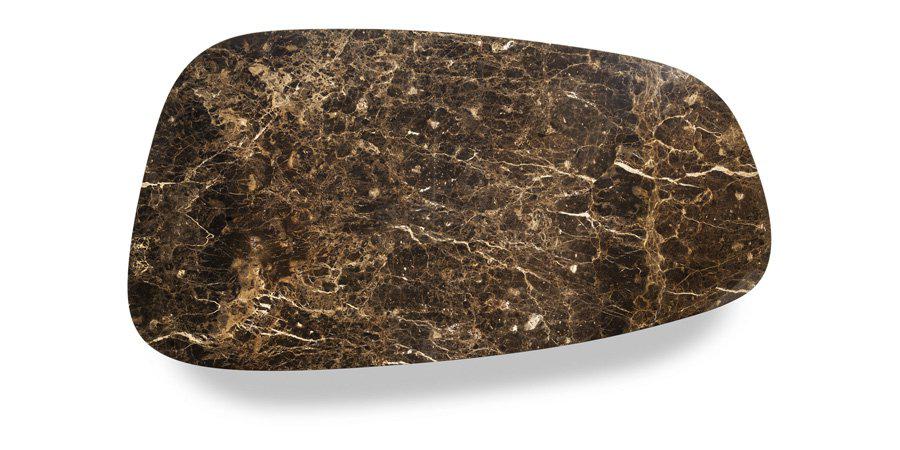Jane餐桌桌面使用珍貴的Calacatta Oro(卡拉卡塔金)大理石、Emperador(金峰)大理石或新款Fior di Pesco(帕斯高灰)大理石(拋光或半拋光表面處理)。桌面下表面以技術(shù)網(wǎng)加固,確保堅固性和穩(wěn)定性。支撐結(jié)構(gòu)由三個支柱構(gòu)成,每個支柱由三個元素組成:一個桌面固定片、一個中央木制主體、一個墊腳片。支撐結(jié)構(gòu)采用櫸木實木木芯,包裹在四片高密度纖維板板材中,使用模壓加工,嵌有摩卡色或雞翅木色梣木鑲片。