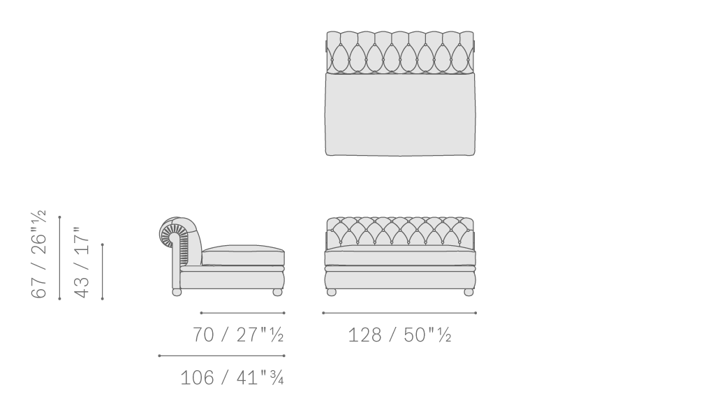 Chester Line沙發的支承結構采用陳年櫸木實木。坐墊、靠背和扶手處的彈簧結構使用手編雙錐形彈簧,架在黃麻帶上。靠背和扶手包墊中填充手工塑形植物纖維。鵝絨坐墊中添加聚氨酯泡沫穩定內芯。Pelle Frau?皮面與Poltrona Frau布藝構成不同搭配組合。經典圓形版本的支腳使用深色胡桃木色或黑色漆光櫸木;高12厘米,使用深色胡桃木色或黑色漆光櫸木;櫸木表面覆蓋軟皮,與沙發覆面搭配,或使用鍍色效果拉絲鋁板。