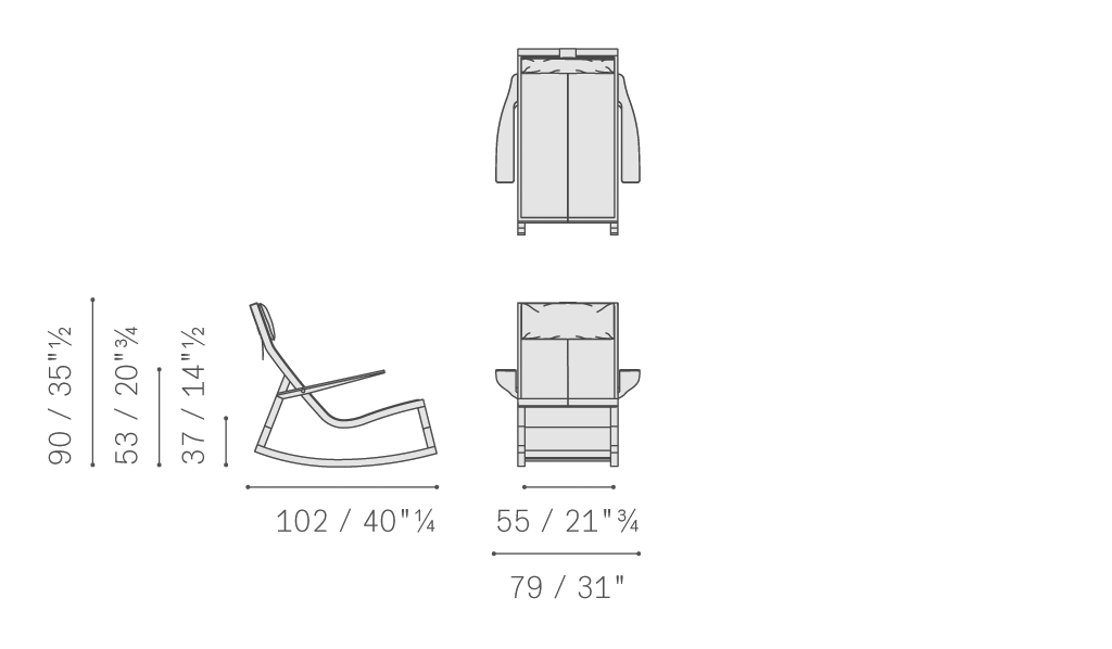 Don’do搖椅主體和扶手采用取自印模的硬質聚氨酯制作,以金屬嵌塊強化。支腳采用珍貴的蒸汽彎曲橡木實木,使用古核桃木效果表面處理。覆蓋Pelle Frau?軟皮。特殊的縱向接縫裝飾主體覆層的整個表面。可以通過扶手椅后側的打孔帶調整頭枕靠墊高度。