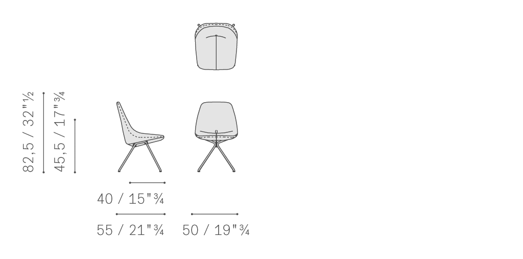 DU 30小扶手椅采用鋼網塑型單一主體,包墊填充印壓聚氨酯泡沫。支腳由鐵管折疊焊接制成,采用褶皺肌理黑色噴漆表面處理(黑色 RAL 9005)。主體配有一個下側橫肋,通過螺絲直接固定在每一對支腳上。包墊填充印壓聚氨酯泡沫,覆蓋Pelle Frau?軟皮,特色在于從靠背下方柔軟褶皺處出發、沿著整個椅面延伸的中央縫線。前側裝飾手工縫線。