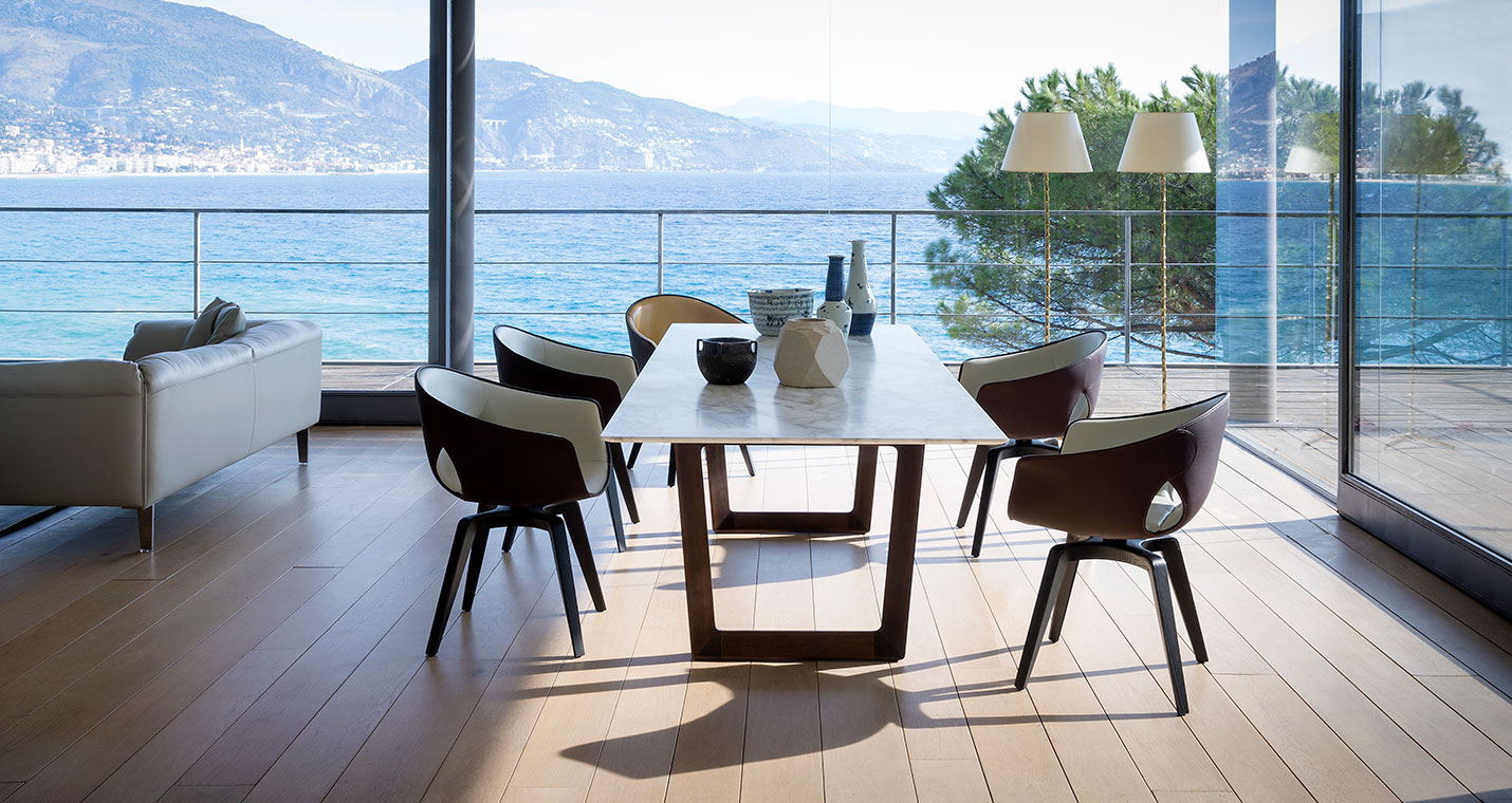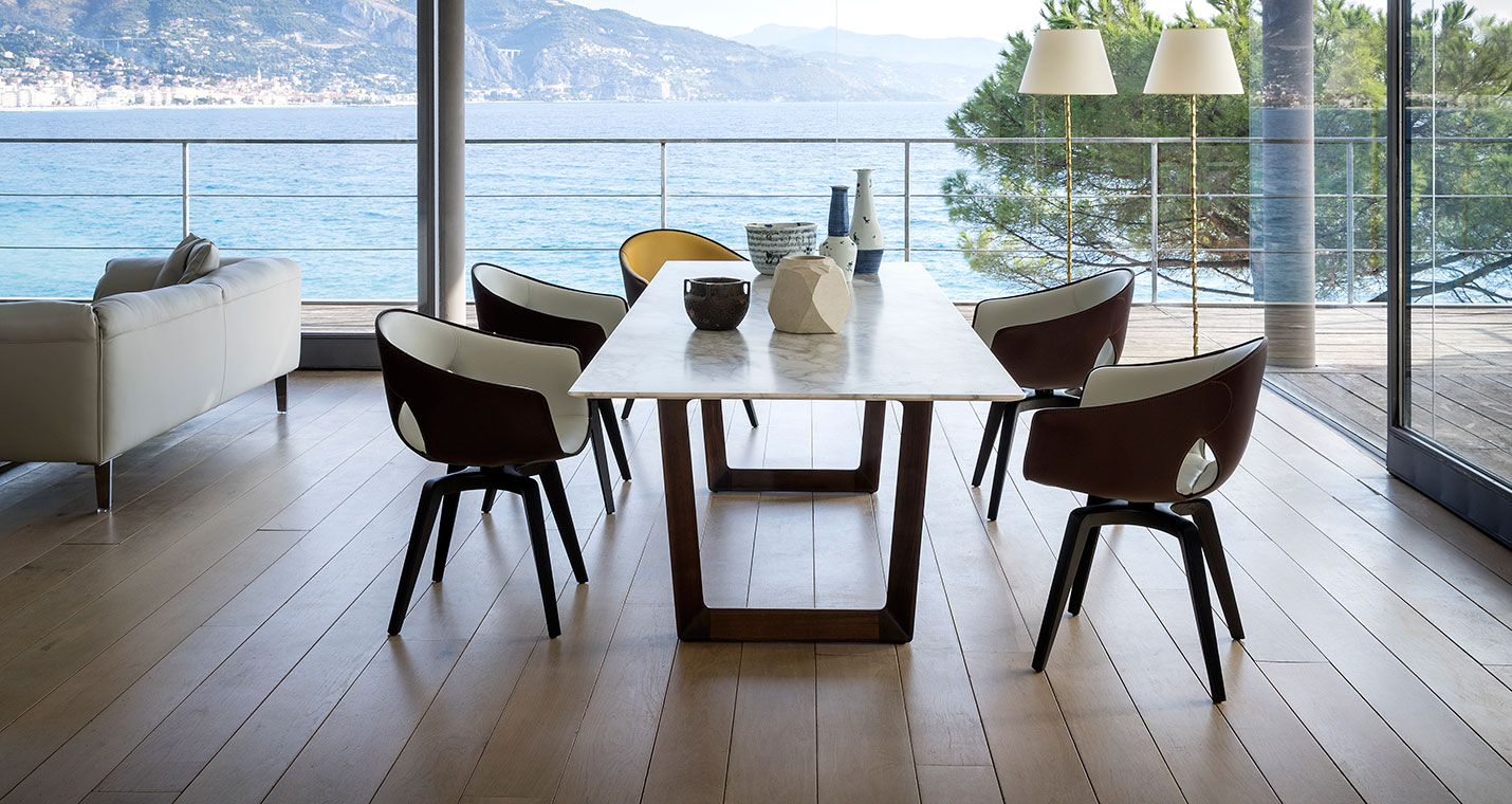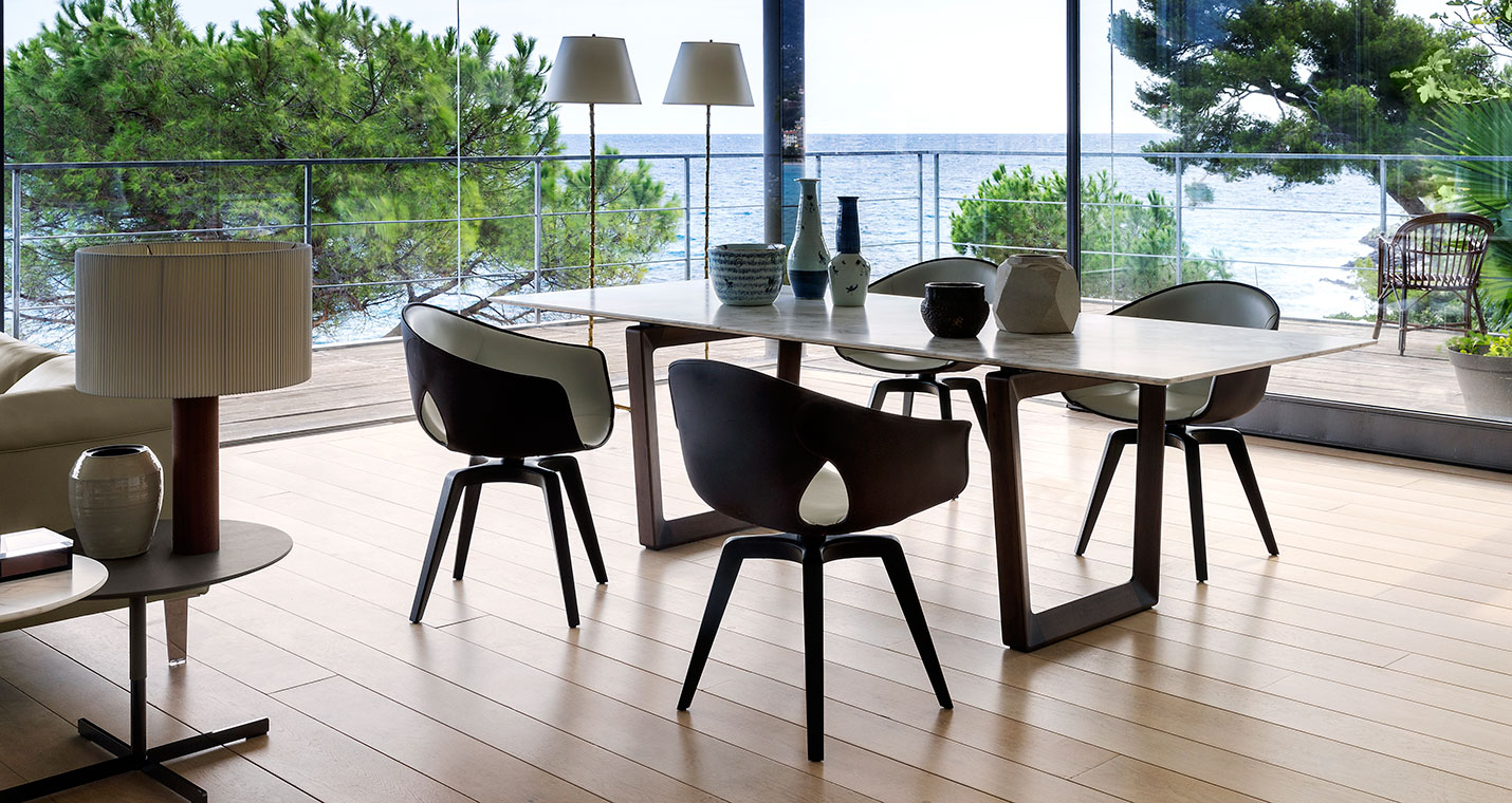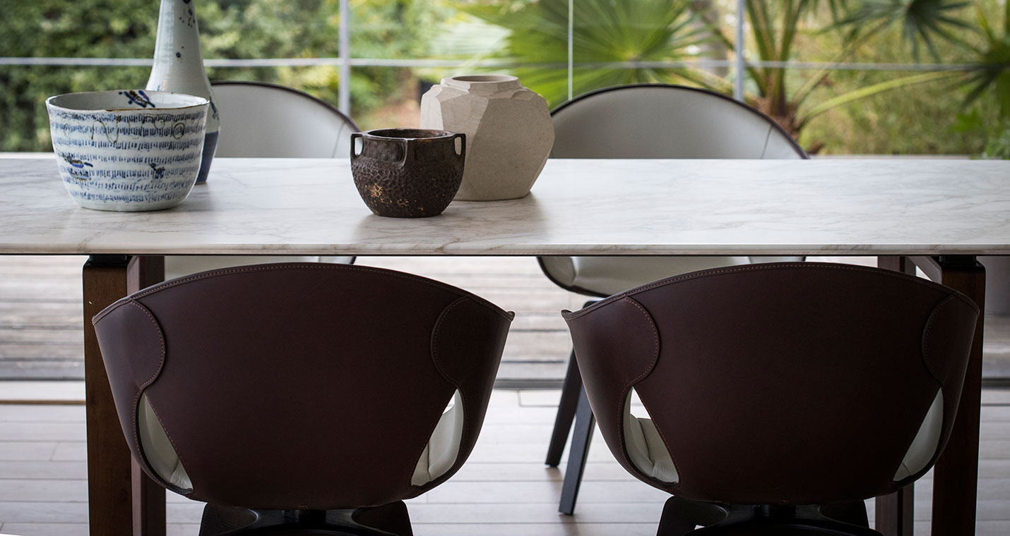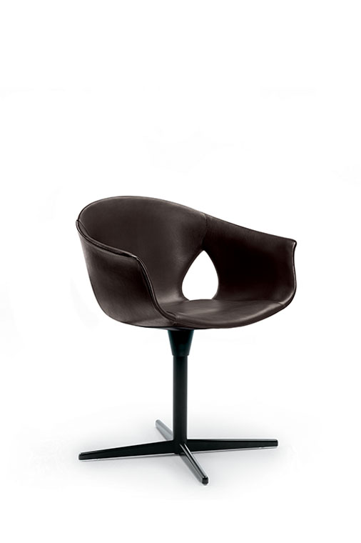 在設計Ginger小扶手椅時,Roberto Lazzeroni帶來一款精致、簡單的座椅。由皮革和軟皮構成的鳥巢狀外殼,精簡、舒適。Ginger小扶手椅具有包容和保護感,裝飾典雅針腳,沿整個外周延伸。Ginger的設計初衷不僅是成為Fred寫字臺的天然伴侶,也可作為獨立座椅,旋轉版本完美適合書房,固定版本完美適合起居室餐桌。