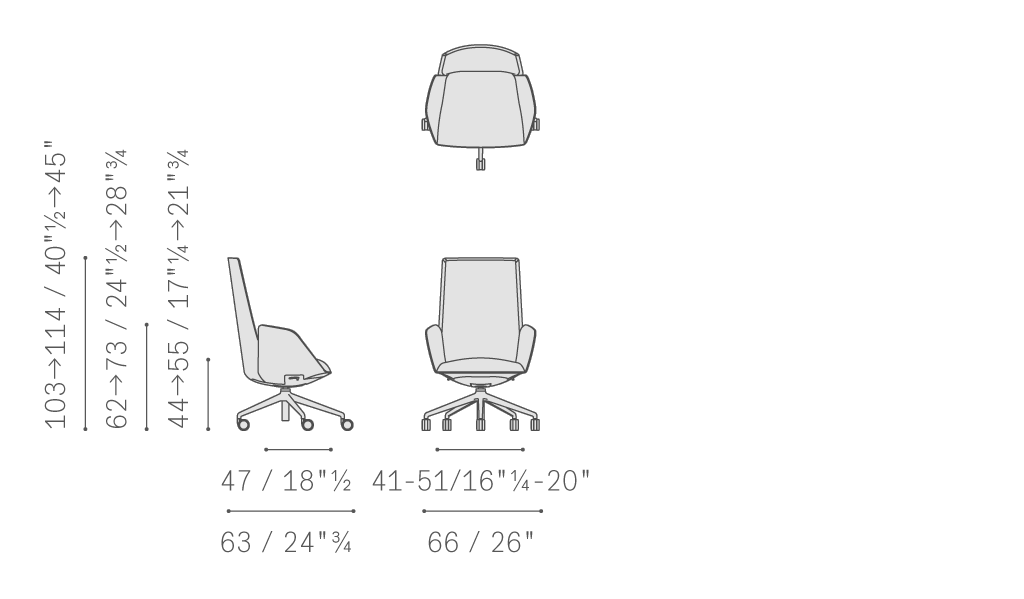 Cercle辦公室靠背椅中,對人體力學的研究尤為深入。同步機械裝置與整體骨架相結合,經過Poltrona Frau的進一步優化,能夠帶來絕佳的舒適性能。結構采用聚氨酯,配金屬內芯。內部填充具有不同密度的聚氨酯泡沫,為不同區域帶來更高舒適度,同時絎縫聚酯棉。五支腳底座采用拋光鋁或黑色噴漆鋁,通過連接支桿與底盤相連,支桿中裝備空氣彈簧,根據底座所用表面處理進行噴漆。支撐點為“W”型軟質或硬質自鎖輪。表面覆蓋Cuoio Saddle Executive鞣制皮革和Pelle Frau?皮革,完全沒有縫線,彰顯座椅的外形美感。Cercle也可以完全覆蓋Pelle Frau?皮革,或者進行搭配,在骨架上覆蓋皮革或鞣制皮革,內表面覆蓋皮革或布藝。