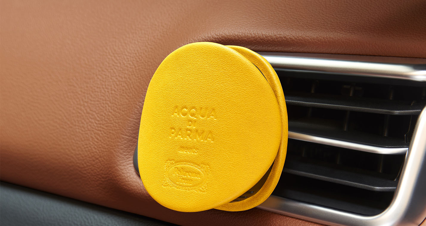 兩家象徵著義大利製造精湛工藝和奢華的公司Poltrona Frau與Acqua di Parma,結合各自的技能聯手打造了Airound? Car車用香氛器。秉承Airound?家用香氛器的成功經驗,現又推出Airound? Car車用香氛器,憑藉這款技術、審美和可持續性方面均為領先的產品,為汽車界帶來了獨特的感官體驗。Airound? Car車用香氛器由眾多獎項加身的二人組合GamFratesi設計,由兩個元素組成:主體(從中擴散香氣)和蓋子,兩個部分均用深灰色聚合物製成,并覆蓋有一個採用精美的PelleFrau?軟皮製作圓形香氛罩,經過專門處理,以滿足汽車領域所需的所有耐用性和安全性要求。Airound? Car車用香氛器的安裝和操作都非常簡單直觀:透過專用的磁力支座輕鬆地固定到汽車的通風格柵上即可。將撥片置于“On”,并打開通風系統,空氣會流過香氛補充裝,將香氣擴散到駕駛室中。使用壽命約為三個月。Airound?車用香氛器使用固體香精,封裝在以聚合物為基質製作的特殊的“珍珠”內,然后被放在香氛補充裝內。補充裝可隨時交替使用。香氛補充裝可以單獨購買,讓您能夠根據旅程或不同時刻擁有自己的個性化的嗅覺體驗:可從經典的Acqua di Parma香水或專為Poltrona Frau打造的特殊Milano等各種香型中選擇自己喜歡的味道。