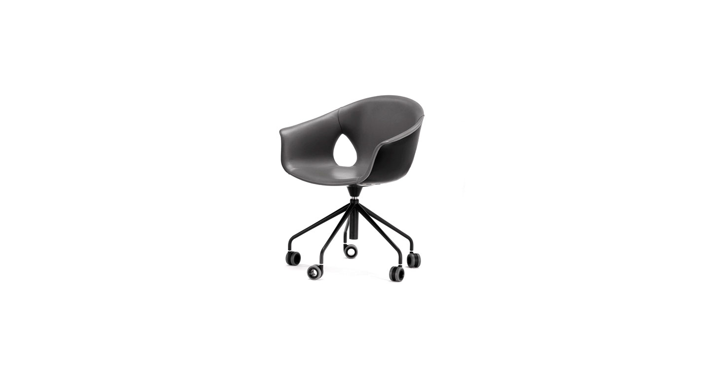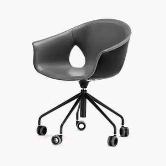 - 五支爪輪底座,分為固定高度360°旋轉(zhuǎn)款和座墊高度可調(diào)的空氣彈簧款。自轉(zhuǎn)輪帶有柔和的自制動裝置,漆面版本配有黑色塑膠支撐。