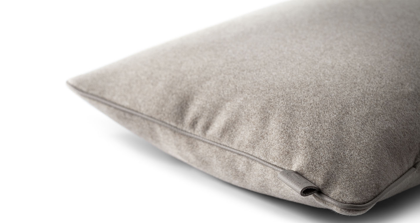 Loro Piana Interiors裝飾軟墊採用Altai和Zelander? Check面料包覆。}Altai是一種羊毛和羊絨的精製混紡面料,將兩種纖維的特性完美融合。一方面,極為細膩的羊絨具有非凡的柔軟性,另一方面,精心挑選的僅產自澳大利亞和紐西蘭的美利奴羊毛,則具有出色的強韌性和保暖性。在經典的Check設計中,Zelander?採用優質紐西蘭美利奴羊毛加工而成,具有出色的光澤和強韌性。其低調的優雅氣息為軟墊賦予豐富的精美感。如同所有羊毛,自然具有阻燃性。