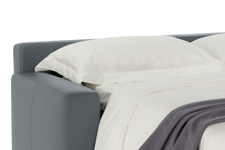 The percale double-bed sheets, which offer the finest quality thanks to the composition of fabrics woven into a dense structure, have a perfect perpendicularity between weft and warp, which gives an extraordinary sensation of smoothness and softness to the touch. The top sheet styles a thin piping 10 cm from the edge: tone-on-tone in the natural white colour; contrasting in the other two colour variants, grey and taupe. The piping motif is echoed in the pillowcases, characterised by four 6-cm ruffles and an internal flap, and in the double-bed duvet cover, with two free 45 cm flaps on the bottom. Finally, the bottom sheet has a straight hem on all four sides.