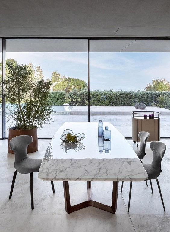 The solid ash wood base typical of the Montera chair joins a four-legged tubular metal base with a conical section that is available in two finishes: burnished or lacquered titanium. Tapered legs make Montera Mas even lighter and more versatile in its uses, from residential spaces to hospitality.
