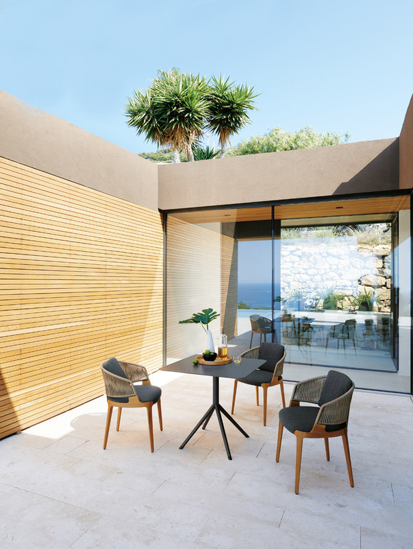 Characterized by a slender frame in painted metal tube with sled-shaped legs, and weaving in nautical or PVC rope, the Vela stools are proposed in two different heights, making them suitable for multiple contexts.