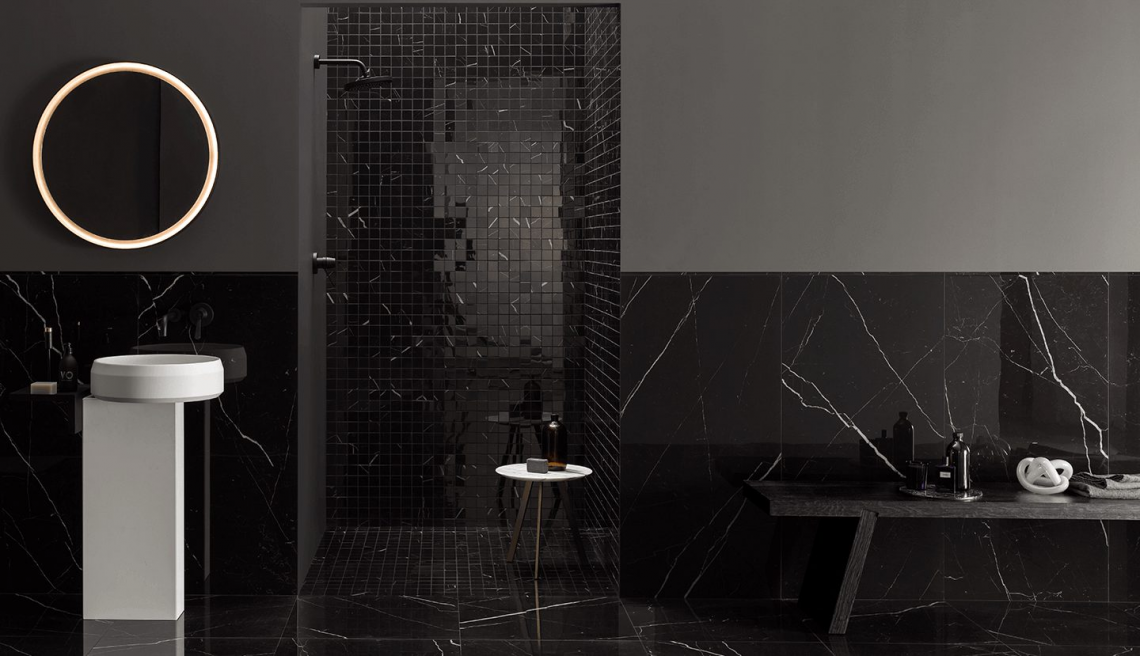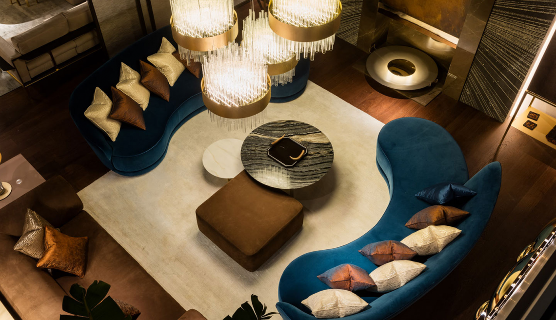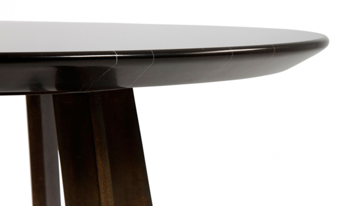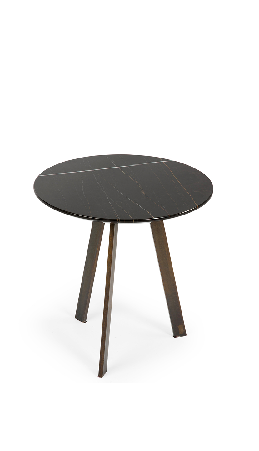 Sono composti da un piano realizzato in prezioso marmo e una base con gambe in metallo con finitura oro opaco. Il modello E è proposto anche con piano in vetro.