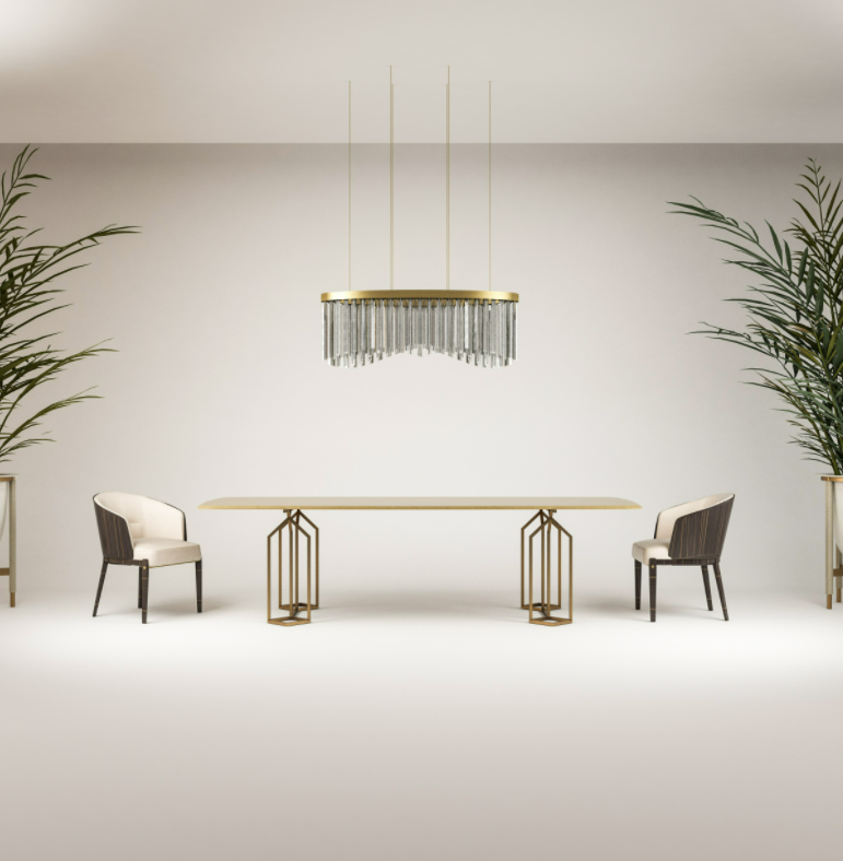 All’interno del perimetro curvi-forme è posizionata una piastra illuminante con struttura in metallo e pannello in policarbonato opalino che diffonde la luce.