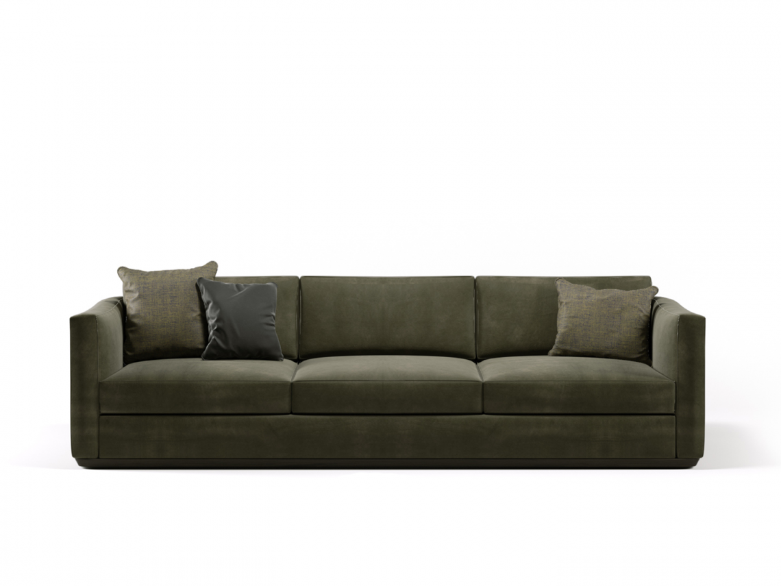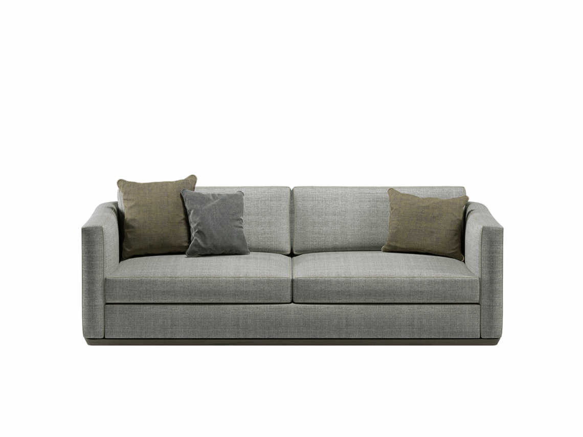 Cuscinatura sedile e schienale sfoderabile, imbottitura in poliuretano espanso sagomato a quote differenziate e piuma d’oca. Il rivestimento è in pelle, nabuk o tessuto con piping in tessuto col. marrone (Ref. Fabric Sateen D6037815 Brown) o in tinta.