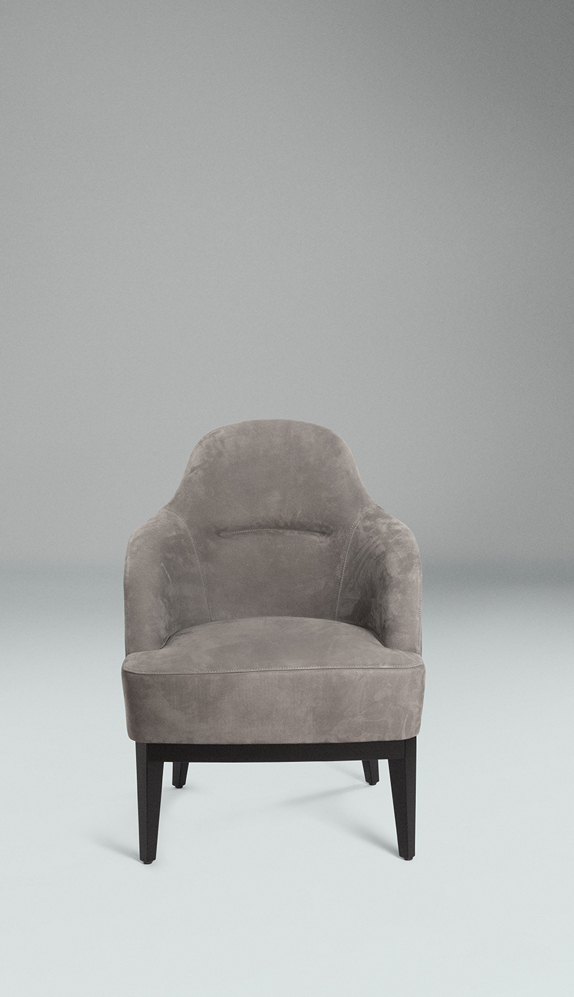 La seduta poggia su una struttura in legno di faggio verniciato nero opaco.