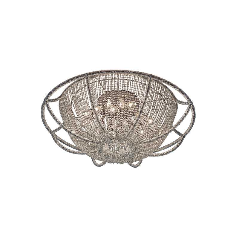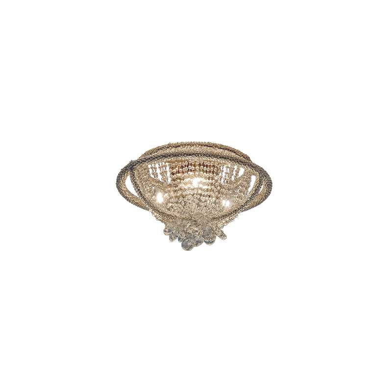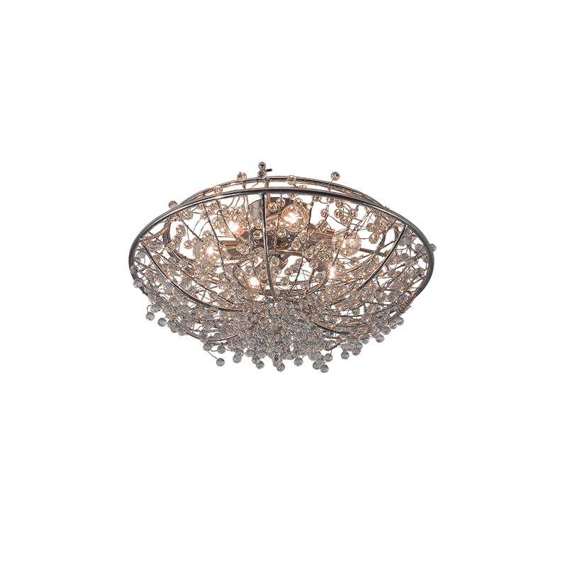 Nana has multiple versions… different forms and different coating techniques: a first one with a single string of transparent pearls that revolves around the metallic part and the lampshades as well; a second one decorated with magical berries: clear crystal spheres located in a natural and random way that amplify the reflections, like light grapes.