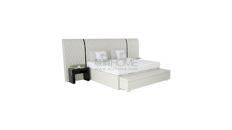 Bed with padded headboard with Diamond quilting. Upholstery in fabric, velvet or leather.