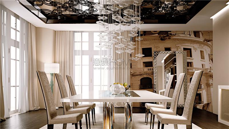 Chandelier with support in white or black lacquered or mirror glass and pendant elements in blown borosilicate glass, transparent or coloured with LED. It is possible to realize customized versions for dimensions, length and shape.