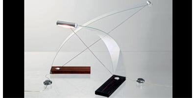 Table lamp with base in extra-clear glass 19mm thick and stand in flexible glass 0.8mm thick. Lighting component in polished aluminium with LED, warm lighting. Height adjustment through a transparent cable on a mechanic-spring- button.