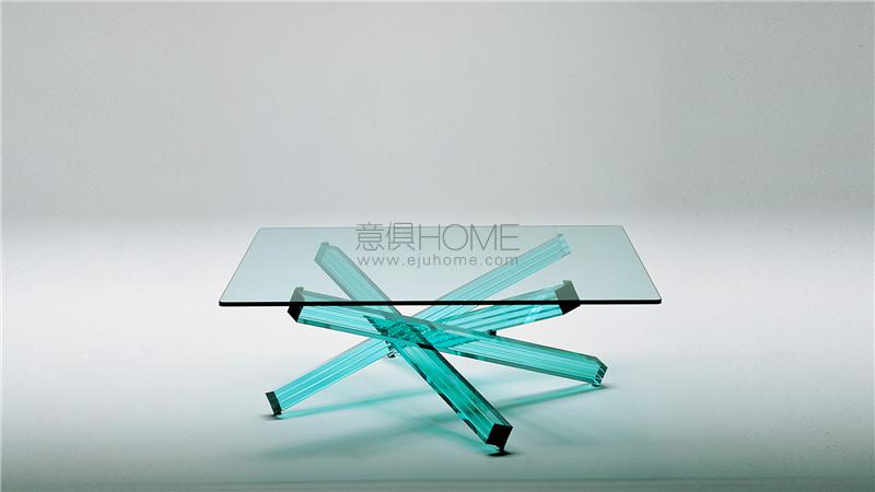 Coffee table with base in extraclear crackled glass. Glass top 12 mm thick.