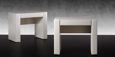 Night-stand with 1 drawer in shiny lacquered wood with bevelled lacquered glass details.