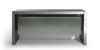 Sideboard with wooden structure covered in smoked mirror glass. Storage unit with folding door in smoked mirror glass with Diamante engravings. LED lighting system.