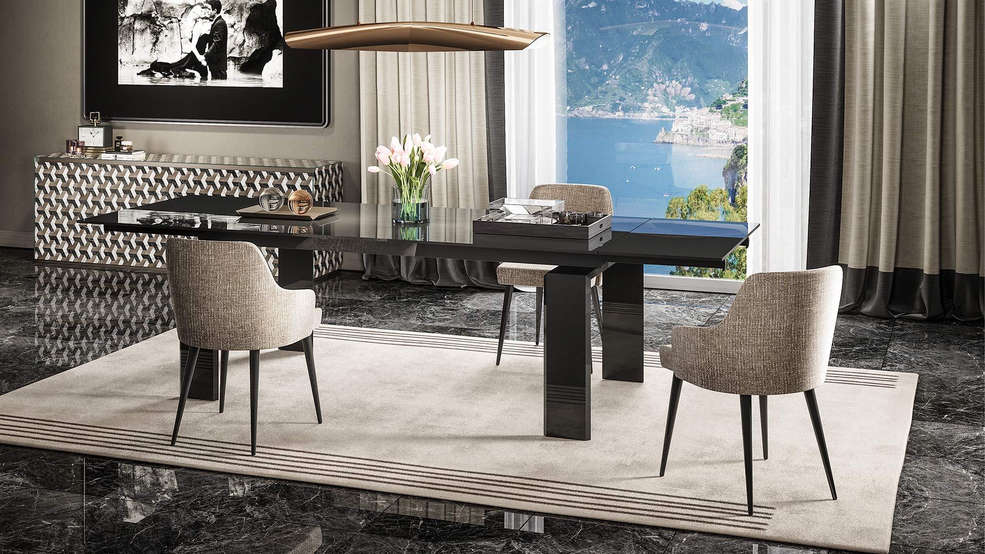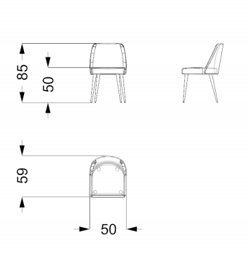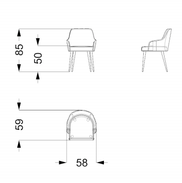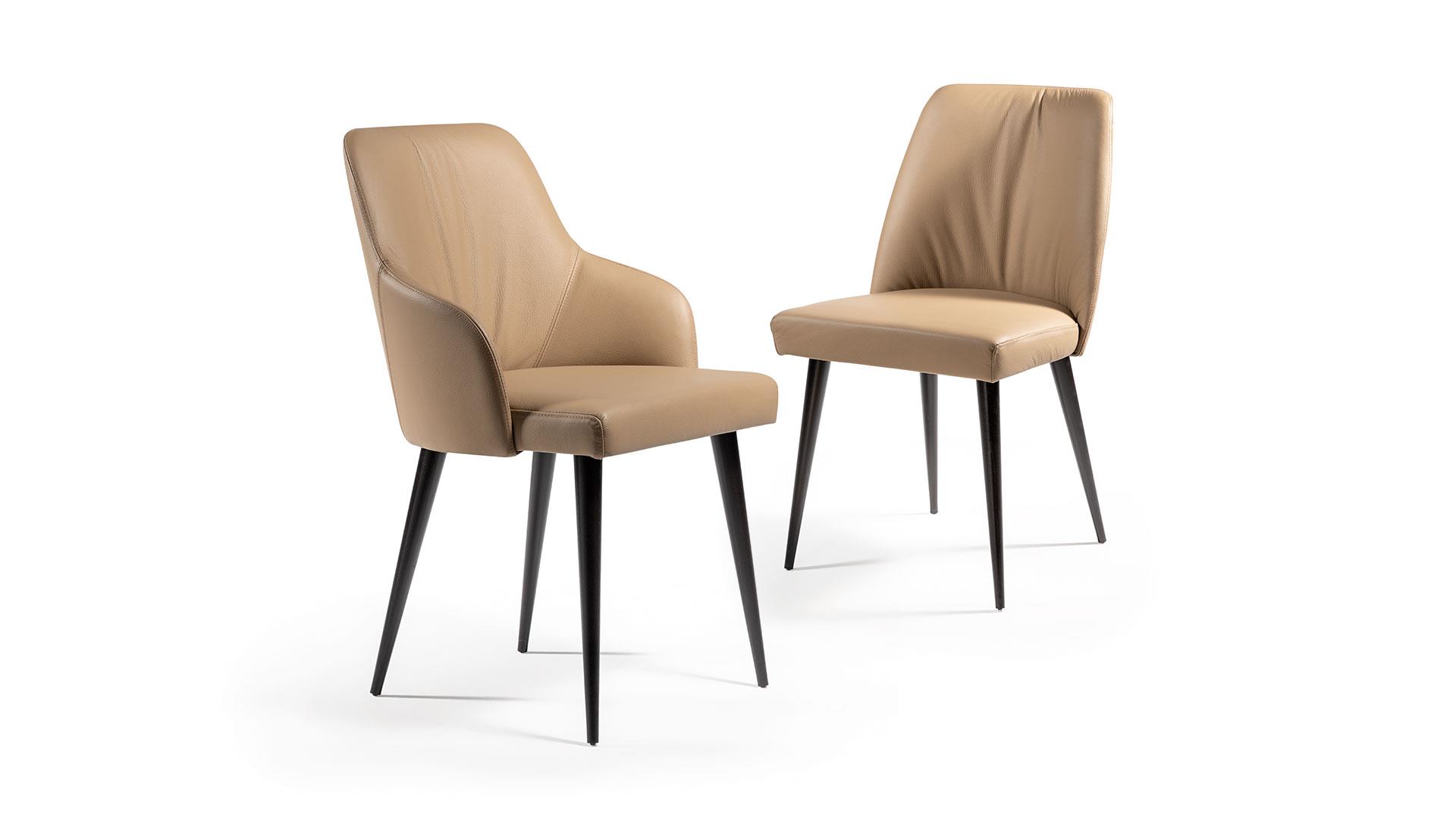 Chair with wooden structure and padded seat and back. Legs in oakwood Beluga or in Bronze (100M) finish.With or without arms.