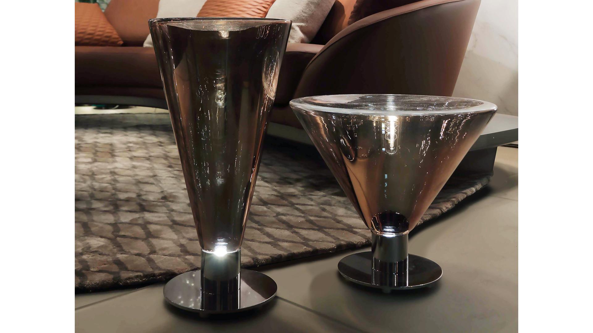 Two dimensions to create dynamism and rhythm, two functions both as table lamps and as pendant lamps.