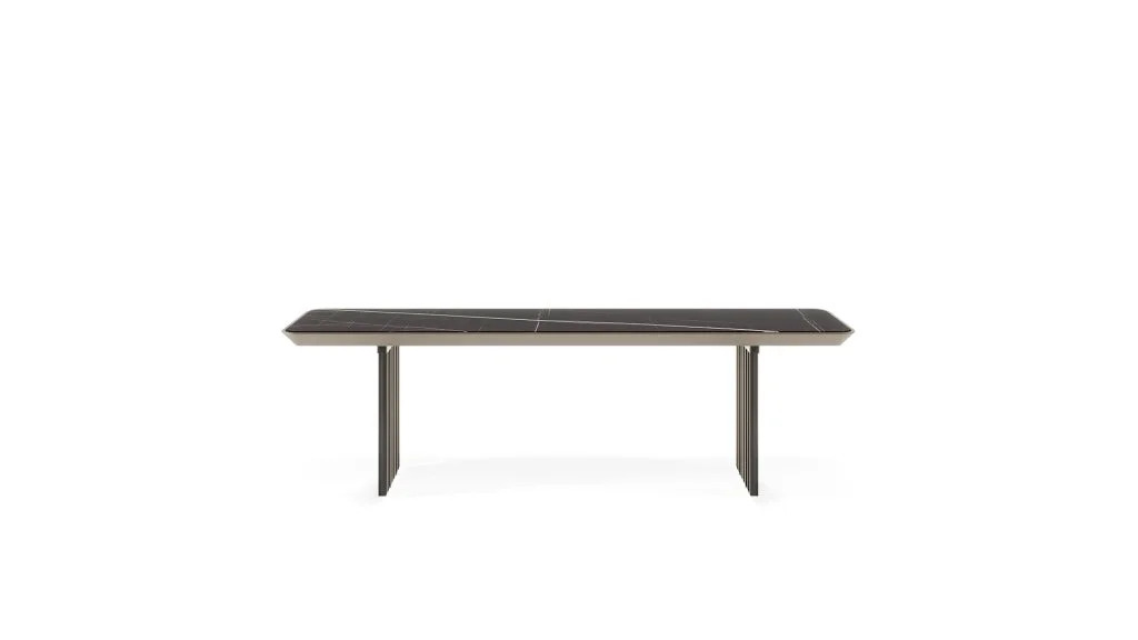 Piano Bevel Wood in Noce Canaletto o in Canaletto Henné, Bevel Wood sp.40mm Bronze (100M) con top in Marmoreflex/Legnoreflex o Bevel Wood sp.40mm Bronze (100M) con cuscino in tessuto o pelle trapuntata.