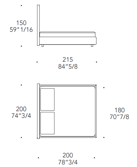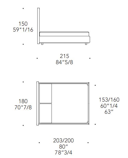 Letto con cornice sagomata in legno finitura Bronze, Ottone, Ottone dark, Titanium con illuminazione LED e interruttore touch. Testiera leggermente imbottita rivestita in pelle o tessuto, personalizzabile con trapuntatura a scelta.?Giroletto liscio. Disponibile versione con contenitore e rete basculante.