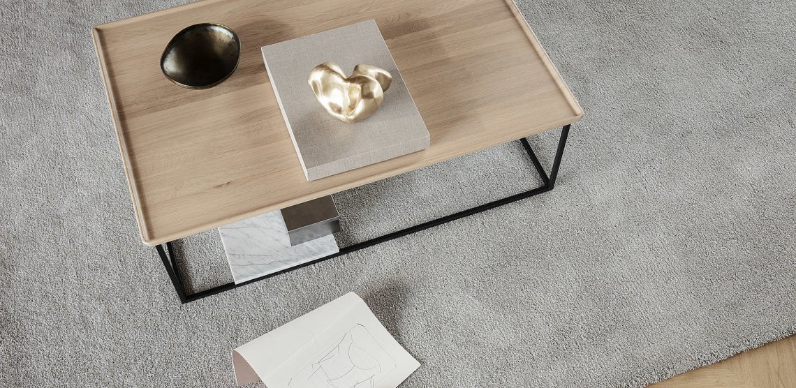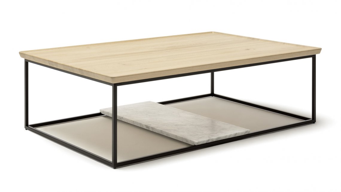 Table top: Coffee table and side table: Solid wood, clear varnish: Oak, oak, black pigmented or American walnut