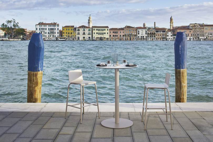 Base tavolo con colonna e crociera sotto-piano in alluminio. Verniciatura a polveri (RAL 9006). La colonna poggia su una base tonda, ideale per l’arredamento esterno di bar e ristoranti sia in situazioni contract che residenziali.