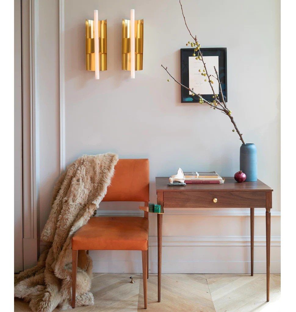 The stately silhouette of The Lion is reminiscent of a traditional Louis XIV dining chair and modernized through clean lines and pared-down details. Its thronelike stature is sculpted with an upright frame, while its delicate legs and natural leather upholstery add a hint of glamour.