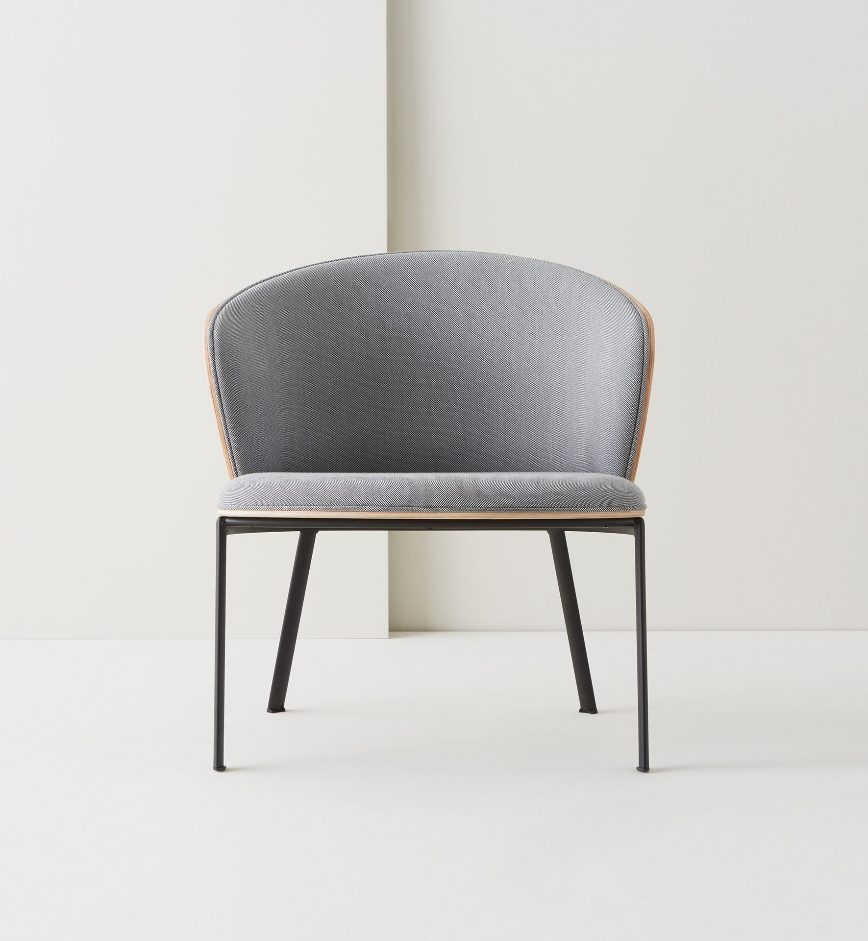 The feeling of comfort that the Billa armchair inspires is immediate. Characterized by its curved oak plywood backrest, Billa wraps you in a feeling of calm warmth guaranteed thanks to the padded panels upholstered in fabric or leather