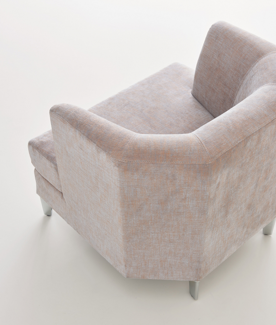 Cosy is a range of upholstered pieces designed to create an environment where one feels deeply at ease without renouncing resistant materials. Multi-ply plywood frame, aluminium die-cast legs, and soft coverings in fabric, leather or faux-leather.
