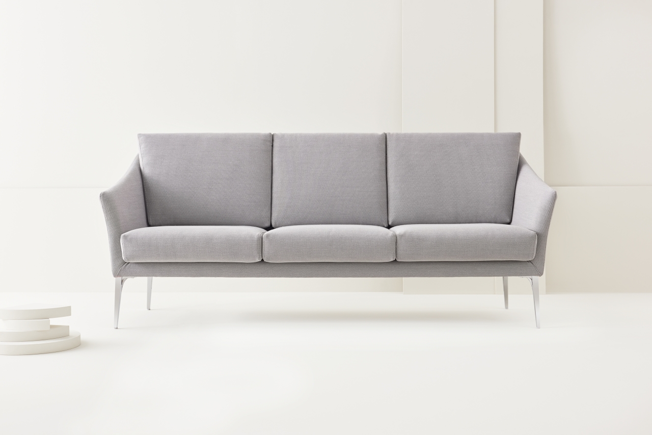 A family of a contemporary lounges characterized by a rigorous shell combined with cushions and sinuous lines. The collection includes lounge armchair, sofa and ottoman able to enhance any environment. Cross not only has charm but also functionality with an internal steel frame covered with non-deformable foam and polyester padding plus die-cast aluminium legs in powder coat or chrome. Covers in fabric, faux leather or leather.