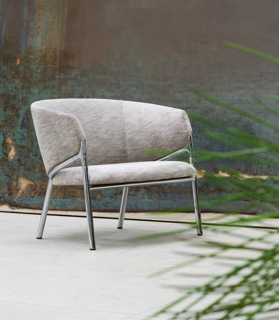 A die-cast aluminum element joins the front legs and circular structure; a detail that for its originality and appeal inspires the name of the collection. The Hammer lounge chair is available with a low or high back, thus fulfilling synergistic needs. Its variety makes it perfect for any environment, from contract to home, from hotel room to meeting room... elegant in every situation.