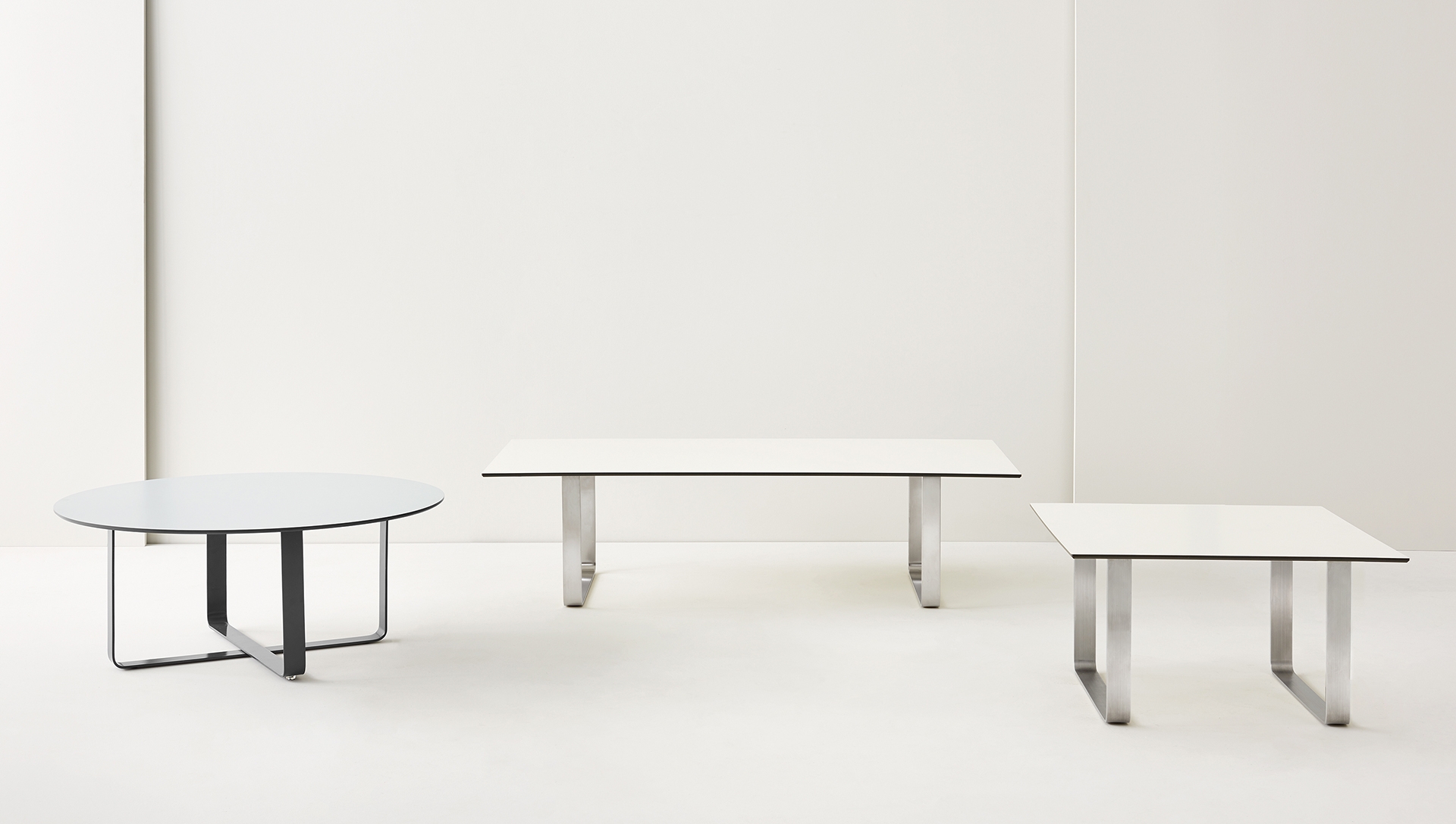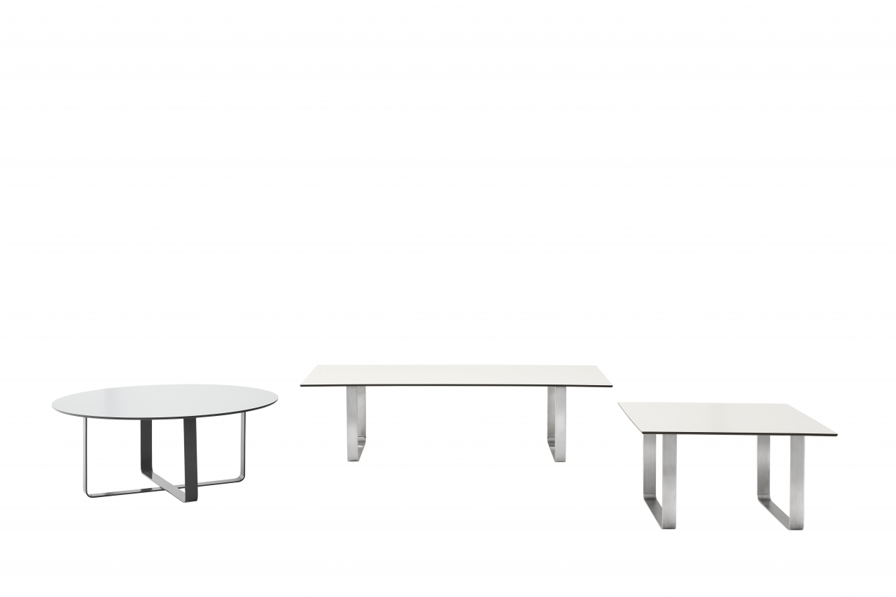 A series of low tables in various sizes, for individual use or as a joining element between Longway’s benches. Thin HPL laminate tops in different colours and slender steel legs in powder coat, satin chrome, or brushed stainless, give a touch of uniqueness in numerous situations.